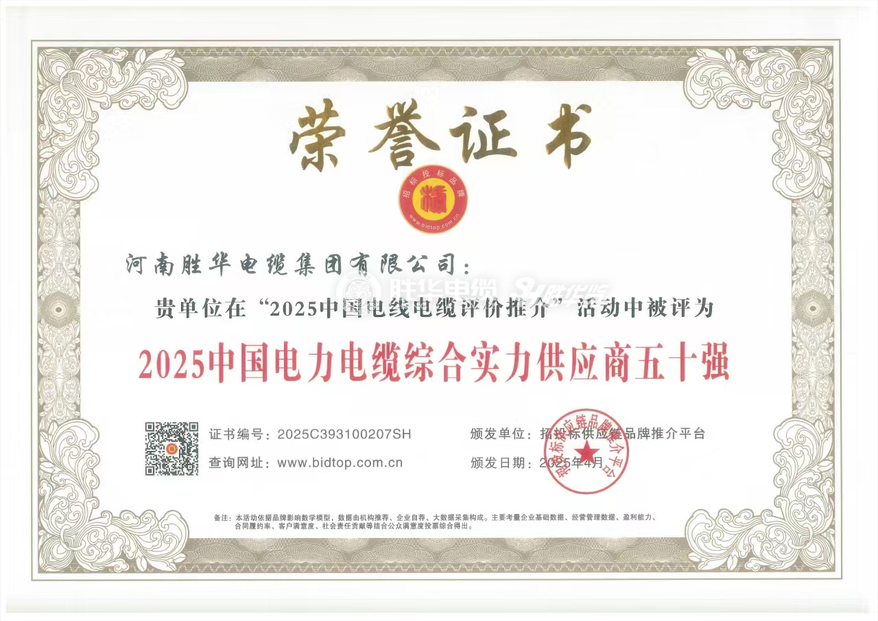 河南勝華電纜集團有限公司是一家集專業研發、生產、銷售、服務于一體的電線電纜高科技民營企業。近年來,企業獲得高新技術企業、中國機械500強、創新發展工作先進企業、河南省節能減排科技創新示范企業、河南省信用建設示范單位、AAA信用等級、河南省質量誠信AA級企業、“守合同重信用”企業等眾多榮譽稱號。
